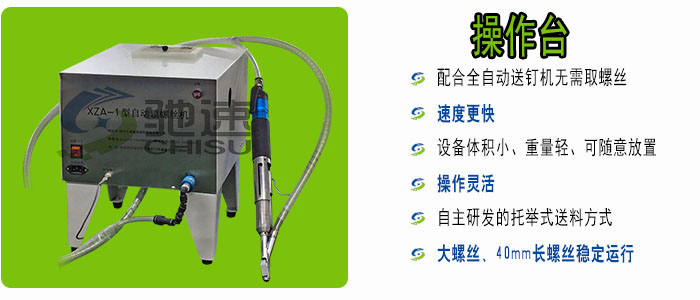 XZA-1型與XZ-1型結(jié)構(gòu)相同,同樣搭配馳速自主研發(fā)的XZ-1自動送釘機(jī),其采用更大規(guī)格的自動送釘機(jī),送釘方式依然是高效穩(wěn)定的吹氣式,其優(yōu)勢在于能夠滿足大螺絲、 長螺絲、自攻螺絲等,尤其是長螺絲,能夠快速、穩(wěn)定的送料。通常支持最大長度45mm,最大規(guī)格M8的螺絲。